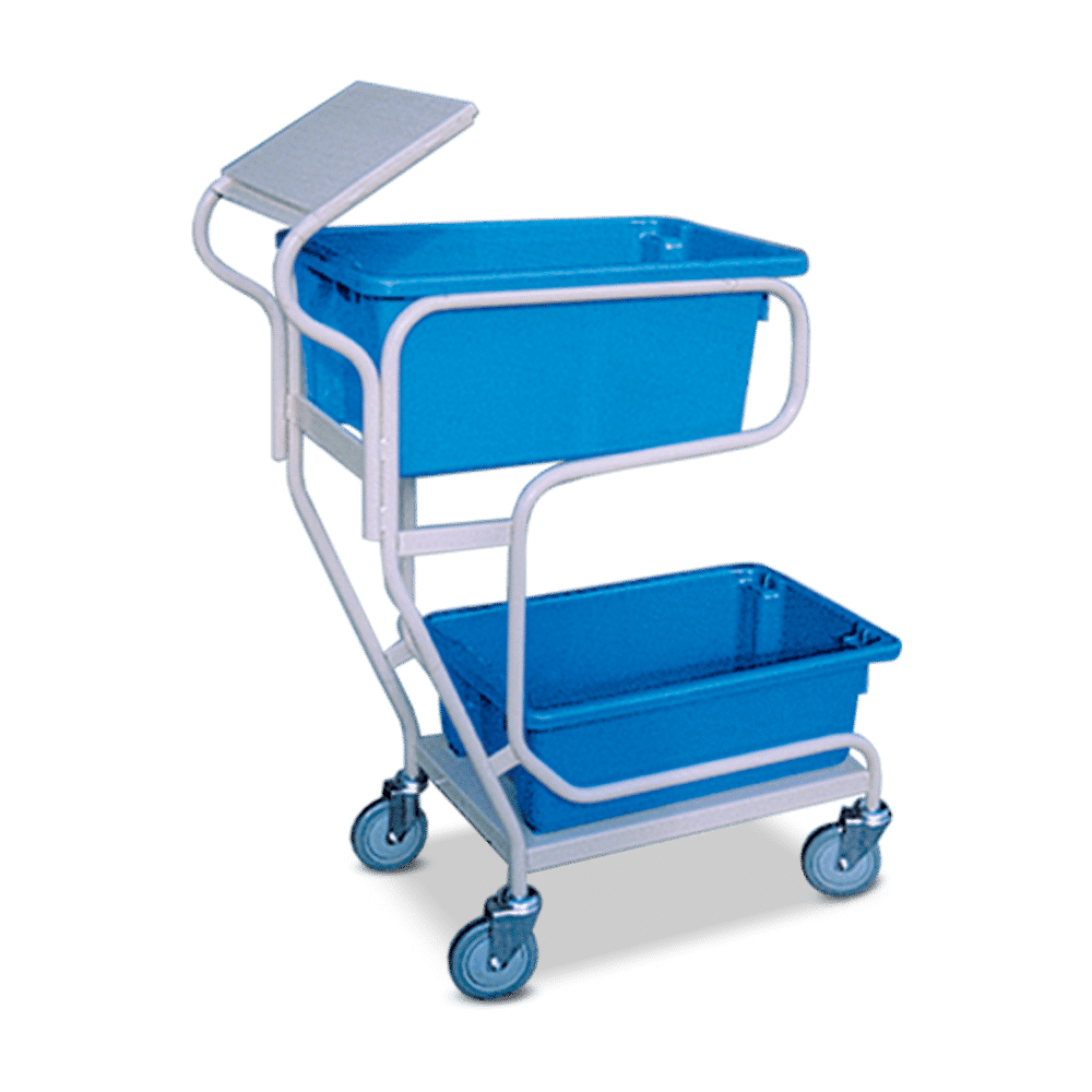 2 Tier Bin Trolley with Writing Top Holds Number 7, 10 & 15 Bins with ready access to both levels of storage. The writing top and pencil trough are ideal for order sheets, packing slips etc in warehouses, factories, offices and process areas. Australian-made, all-steel construction with a beige powder coat finish.