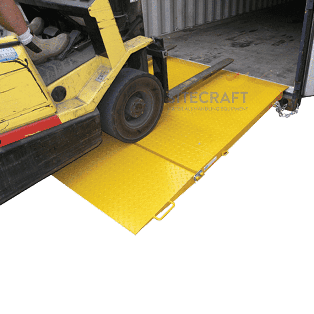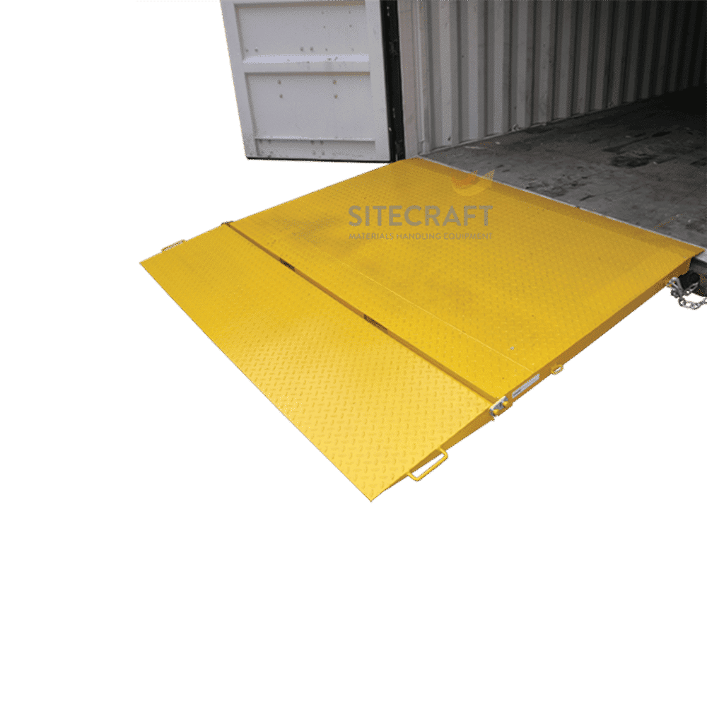 The Folding Container Ramp is designed for bridging into standard containers from ground level. The self-levelling lip allows for full load capacity when on slightly uneven ground.