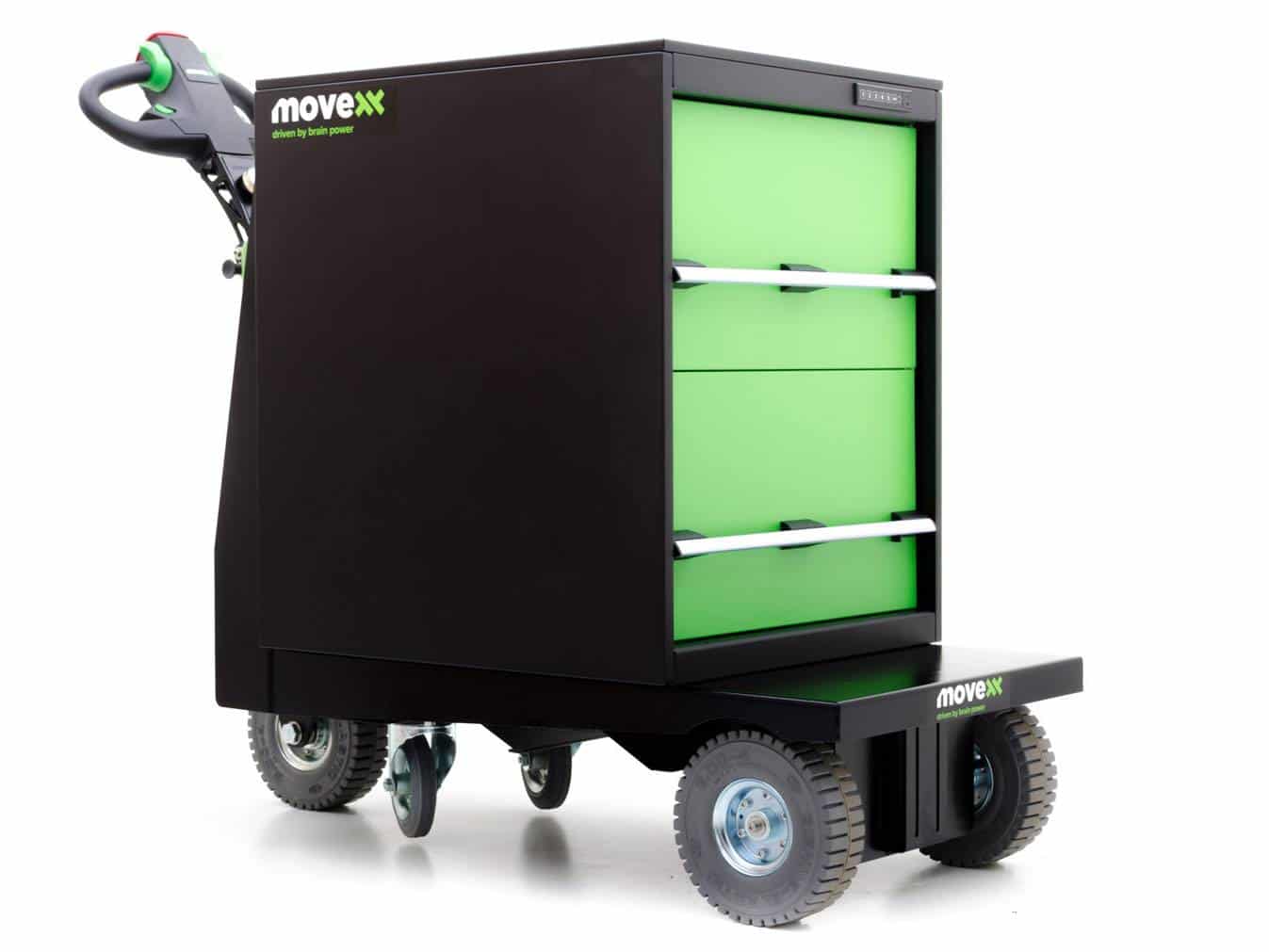 The distribution centres, large offices, and magazines had a large demand for an electric platform cart. We decided to heed the call, which result in the Movexx P300. The Movexx P300 is an electric platform cart able to easily move 750 kg. The machine has a loading platform of 800 mm wide and 1200 mm long. The flat loading platform makes sure a structure is possible. Think of a tool cabinet for example. Because of its versatility, this electric cart is suited for the following market segments: industry, supermarkets & retail, hospitals, airports, flower industry, waste management sector, caravan storage etc.
