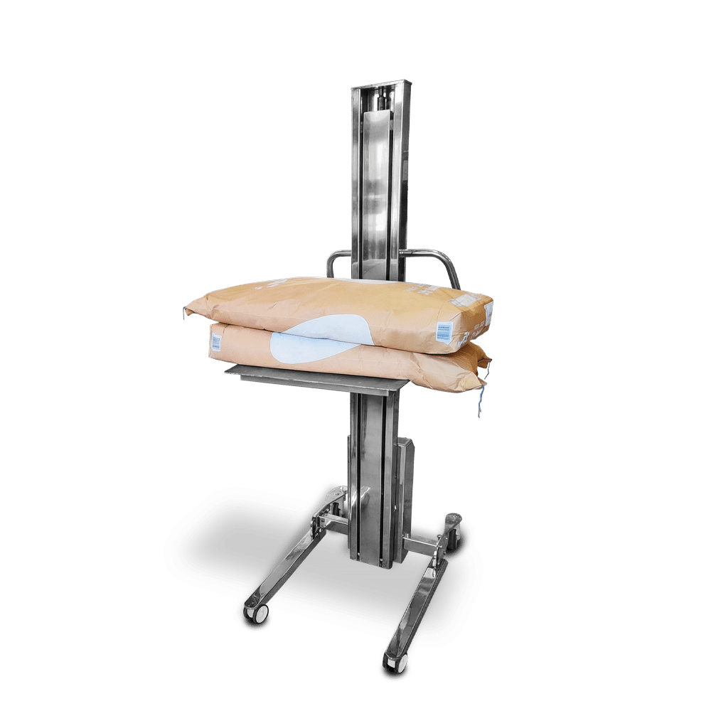 Engineered for frequent transfers of ingredient bags and soft loads, this unit supports safer hoisting, staging and positioning between floor level, benches, mixers and processing stations. The electric lift system delivers smooth vertical movement, reducing manual strain and improving control during repetitive handling. Its lightweight frame remains manoeuvrable in tight production spaces, making it practical for sites that need consistent bag movement without introducing unnecessary bulk.