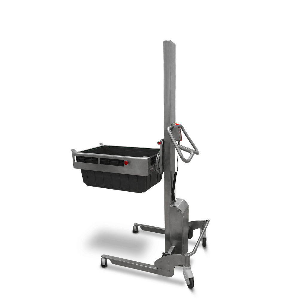 This model delivers a strong balance of hygiene compliance and everyday agility. For heavier loads or more demanding duty cycles, the heavy-duty crate lifter is the next step. Where washdown resistance is not required, the lightweight steel version offers a durable industrial alternative.