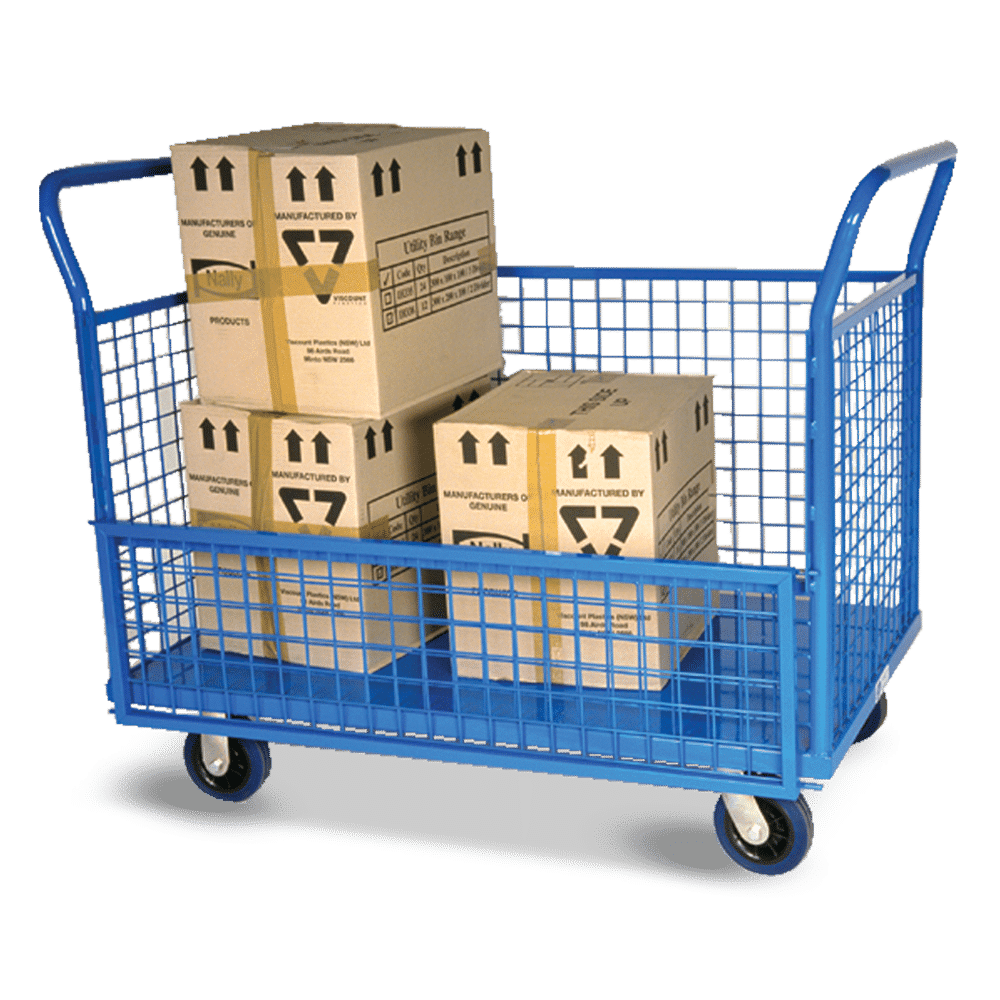 Sitequip’s heavy duty trolley with mesh cage with drop down side for easy access.