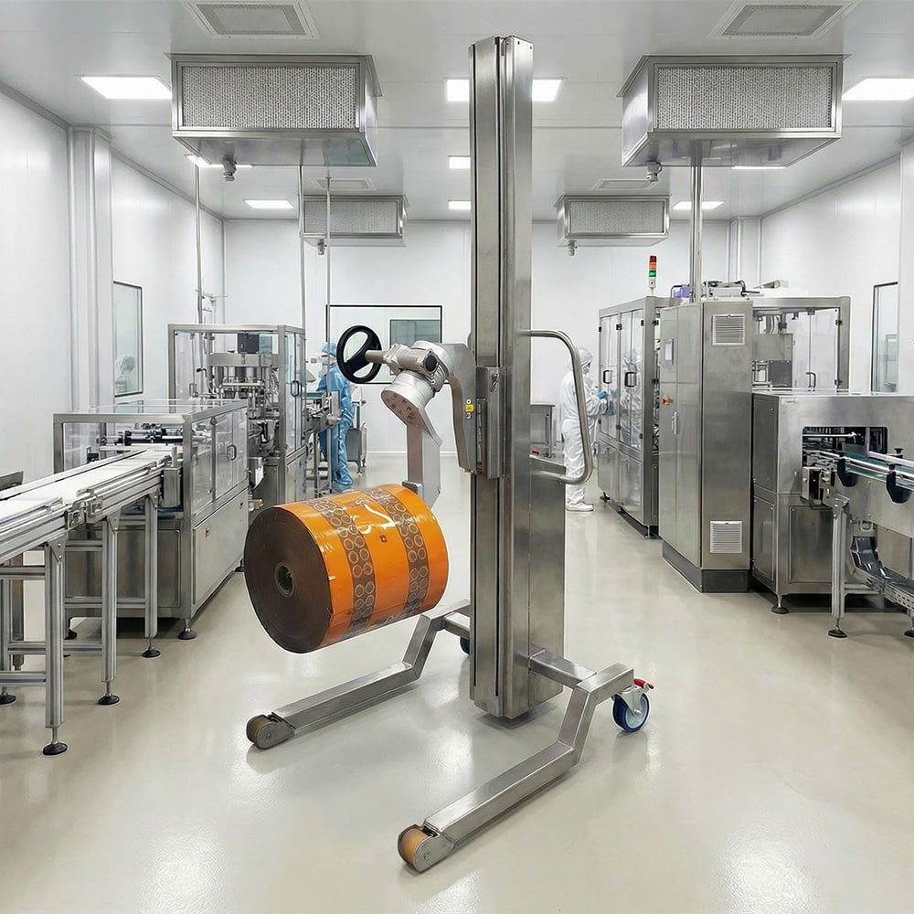 Roll Heavy Duty Stainless Steel Electric Lifter is designed for high-capacity roll handling equipment in hygiene-sensitive environments. Combining a reinforced heavy-duty frame with stainless steel construction, it supports heavier rolls in food production, film processing, pharmaceutical manufacturing and clean converting facilities where corrosion resistance and washdown compatibility are essential.