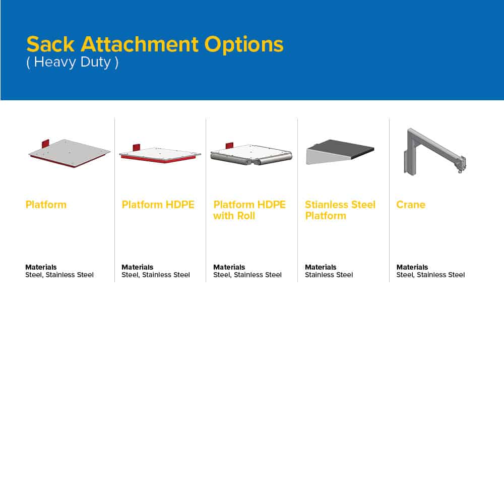 Crane (200kg): for suspended picks where sacks are supplied in loops or require hoisting/positioning without fully supporting the base on a deck.